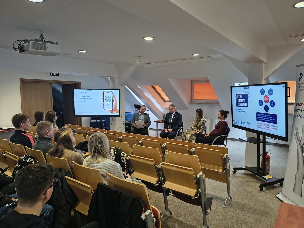 Spotkanie otworzył Prodziekan Wydziału Ekonomicznego Akademii im. Jakuba z Paradyża dr Andrzej Kuciński, który to przywitał przybyłych oraz podzielił się własnymi refleksjami na temat zawodu Biegłego Rewidenta. Następnie Prezes Krajowej Rady Biegłych Rewidentów Kamil Jesionowski, przedstawił wykład przybliżający realia pracy audytora i kompetencje potrzebne w tym zawodzie.