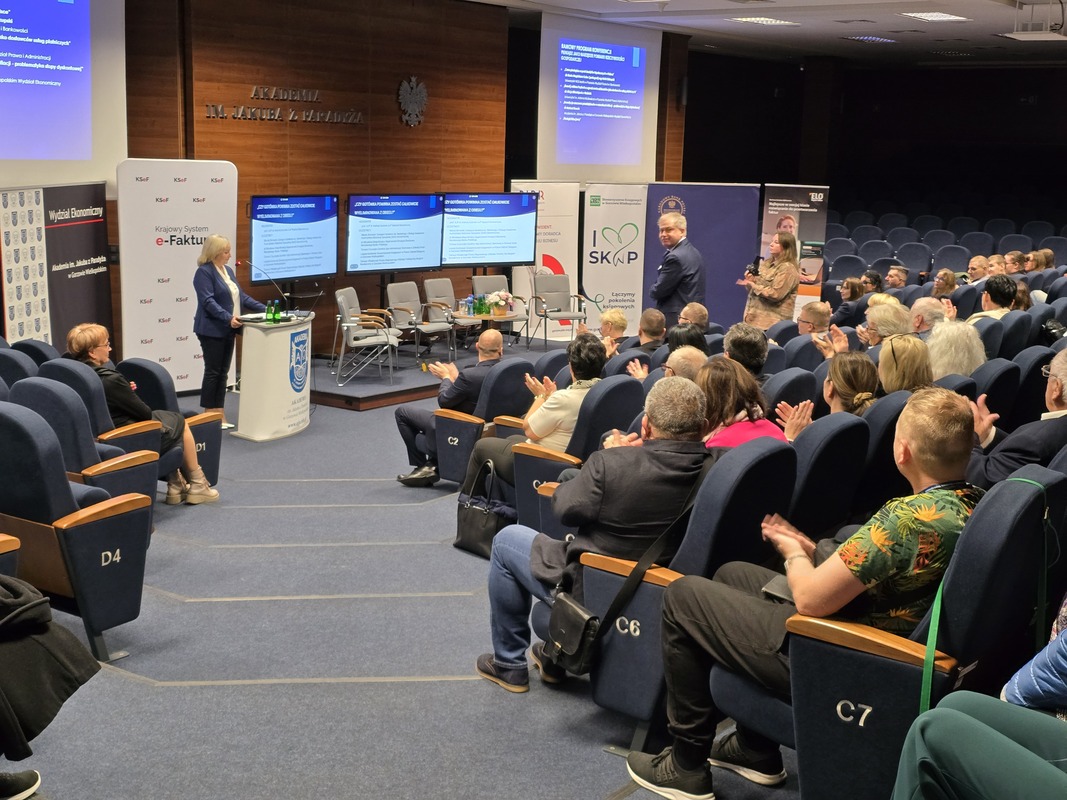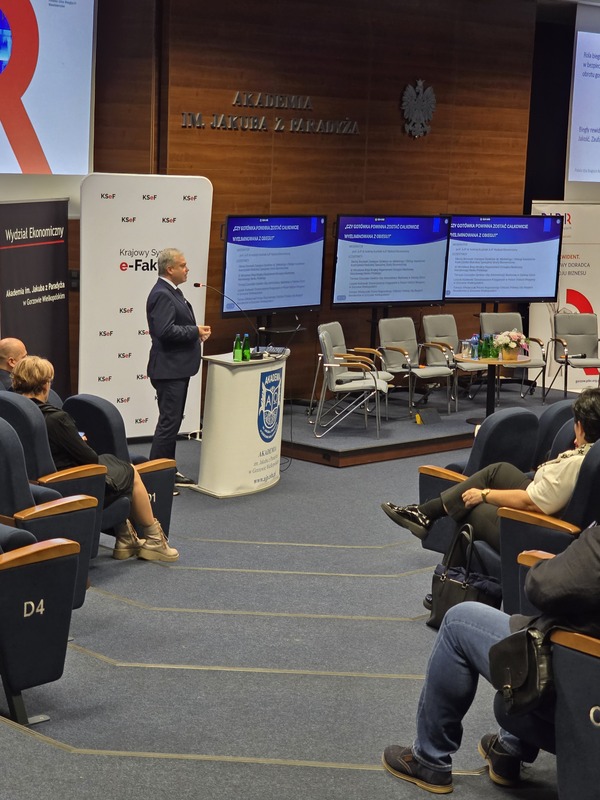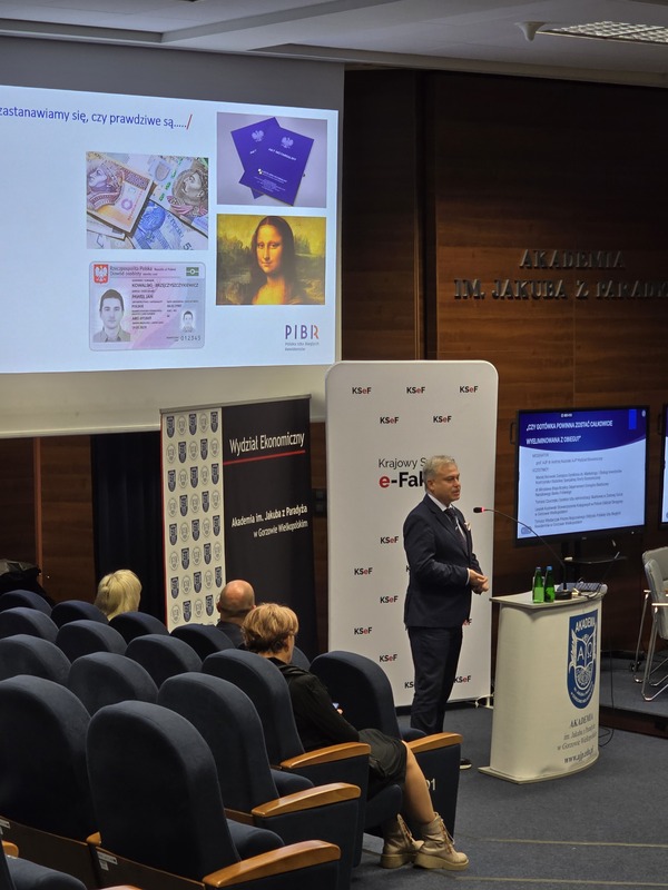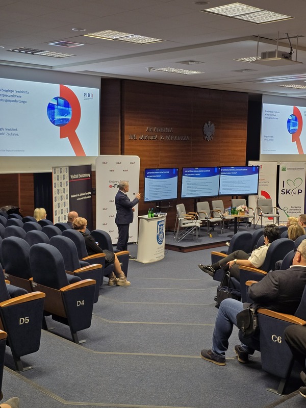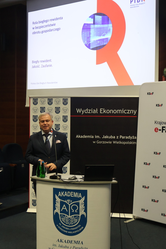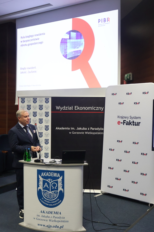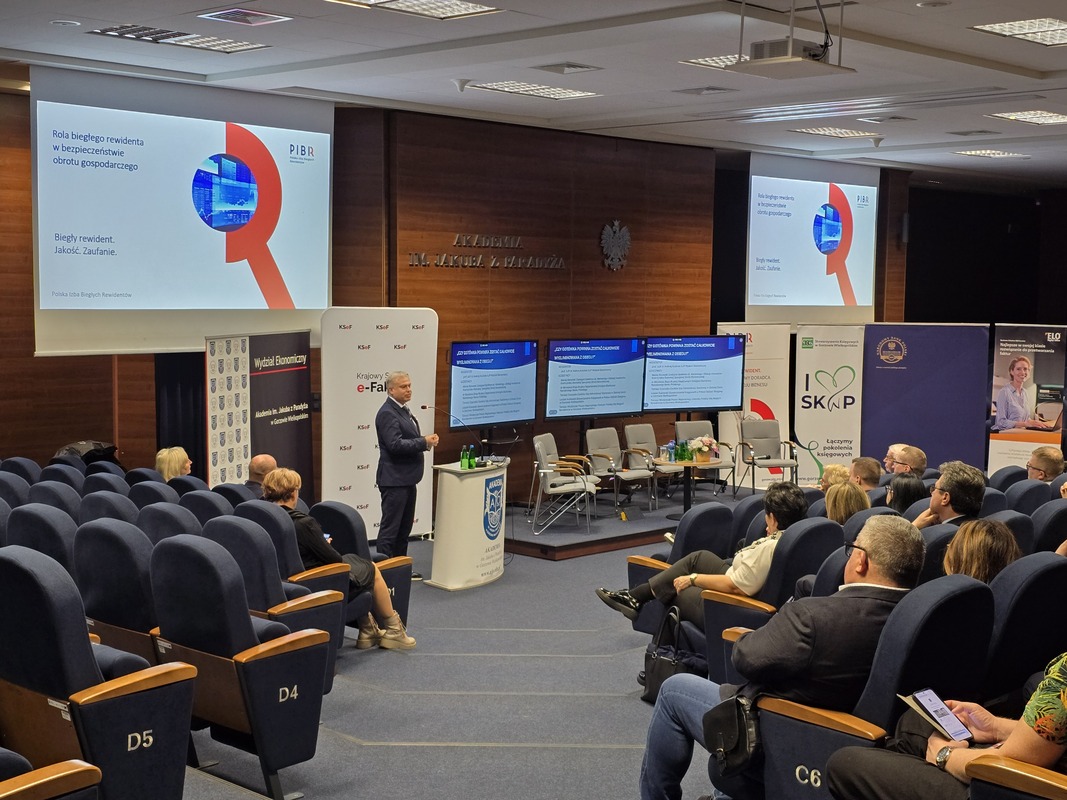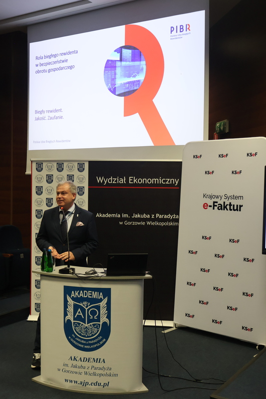 Podczas konferencji, Prezes Krajowej Rady Biegłych Rewidentów Kamil Jesionowski, przedstawił wykład o temacie „Rola biegłego rewidenta w bezpieczeństwie obrotu gospodarczego”.